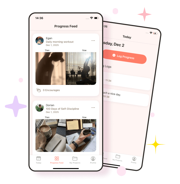 The simple way to track any goal with daily photos. Log your journey, share milestones, and get inspired by a supportive community.
